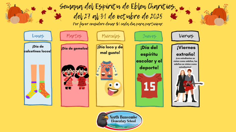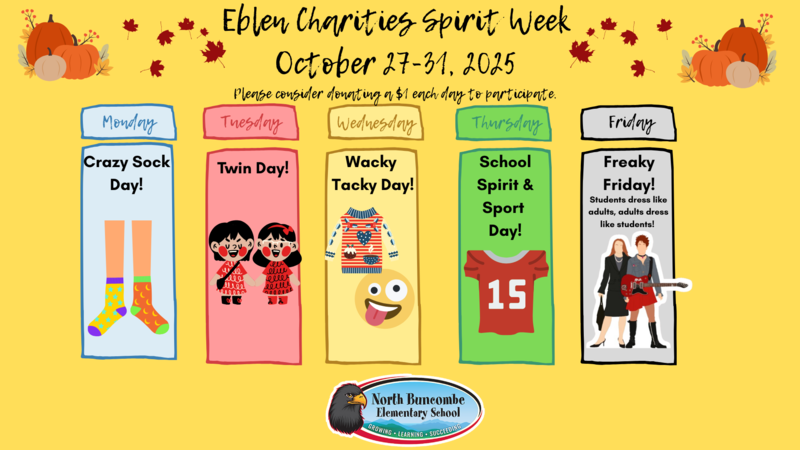 The week of October 27 - October 31, NBES will participate in Eblen Charities Spirit Week!